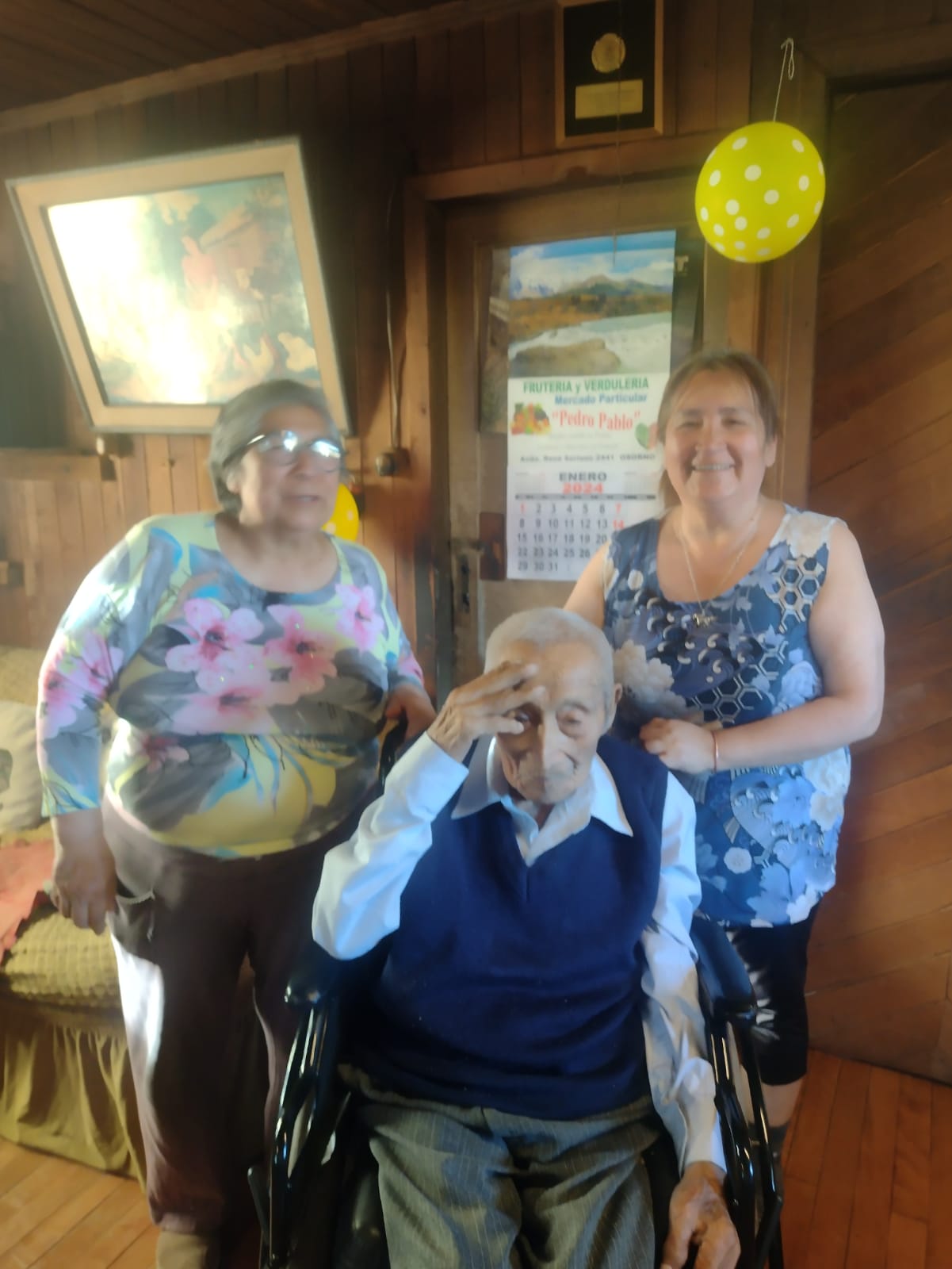 Nació en su querido campo de Pichidamas, en la zona de Dos Arrayanes. Era el mayor de siete hermanos. De joven, por trabajo, se trasladó a Osorno, donde se casó con su amada esposa, Rosario Peralta Aros, con quien compartió 60 años de matrimonio. Juntos formaron una gran familia que hoy es su mayor herencia: cuatro hijos —Teresa, Cecilia, María y Marcelo—, tres nietos criados como hijos —Francisco, Nicol y Andrés—, además de 13 nietos, 21 bisnietos y 4 tataranietos que llevan en la sangre su ejemplo y fortaleza.